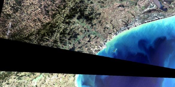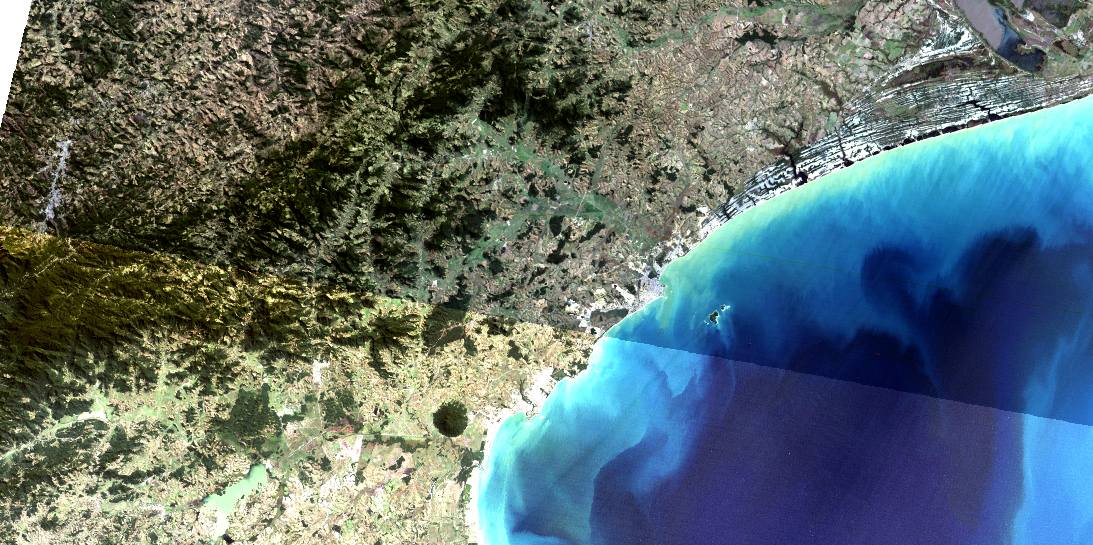 As imagens de satélites, costumam a apresentar um background negro e quando sobrepostas encobrem a imagem daquela que ficar no plano de informação inferior.