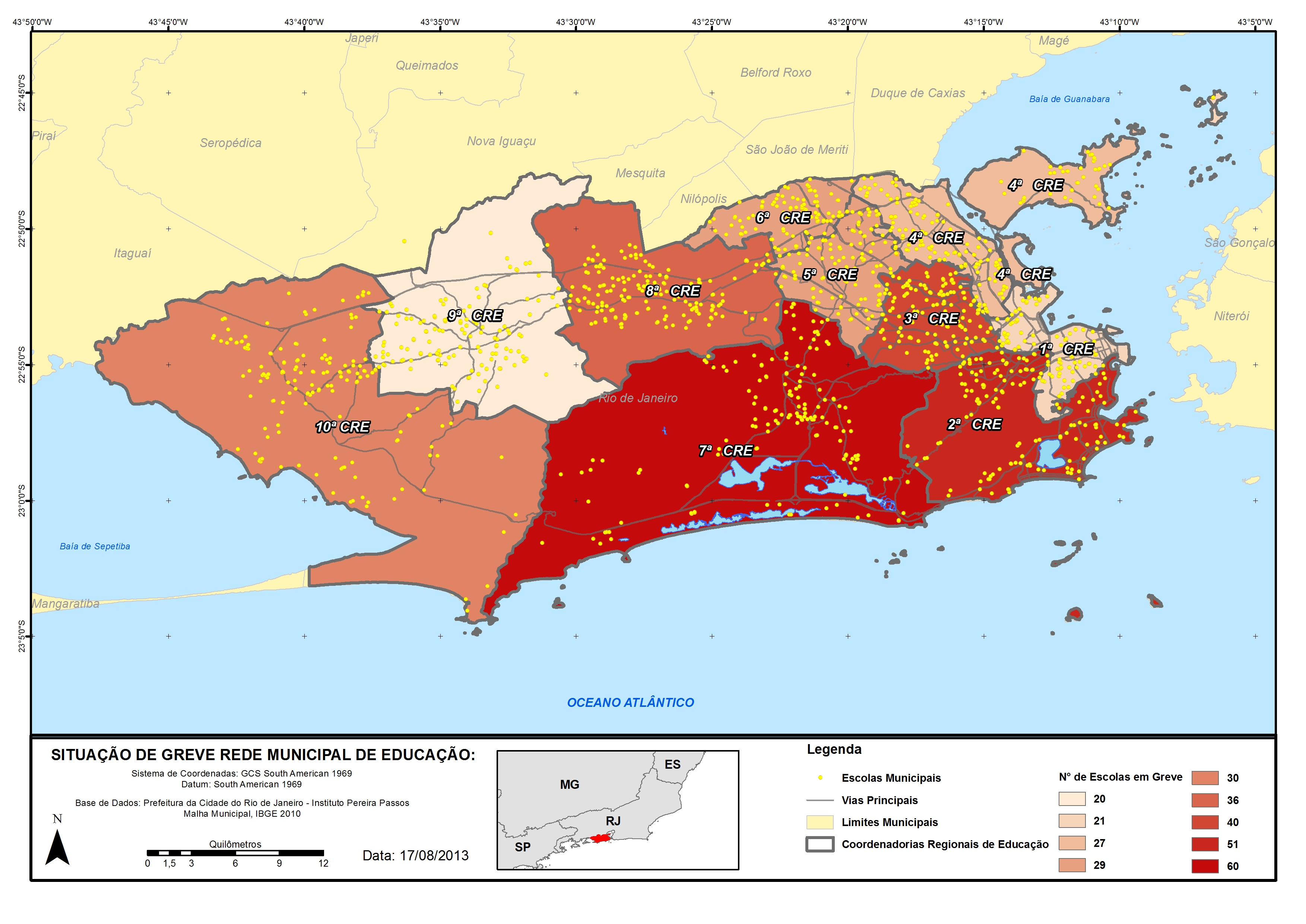 Base-Georio2013-17-08Este mapa é uma informação geográfica e deve ser feito, sobretudo, por profissionais com responsabilidade. Afinal, este resultado é um mais que uma figura, é um mapa temático com potencial para evidenciar a condição de greve das escolas. Para não serem calados, a solução dos movimentos foi caminhar na direção de uma ferramenta que se torna cada vez mais popular, interativa e acessível.