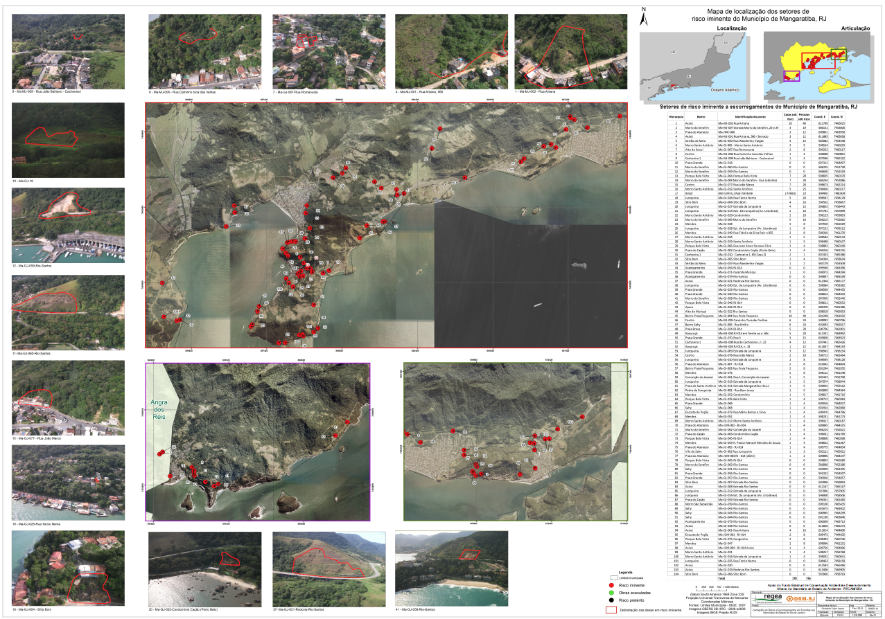 O DRM-RJ disponibiliza para Download Cartas de Risco a Escorregamento de Municípios do Rio de Janeiro, que aborda os riscos iminentes. A metodologia de análise qualitativa, em escala grande, do risco geológico a escorregamentos, adequada às condições do Estado do Rio de Janeiro, foi definida em 2010, servindo de base para o programa de Mapeamento de trinta e um municípios, considerados prioritários, em função da análise apresentada, em dezembro de 2009, no documento Diagnóstico Preliminar sobre o Risco a Escorregamentos no Estado do Rio de Janeiro, produzido pelo Serviço Geológico do Estado do Rio de Janeiro e aprovado pelo Governo do Estado. (DRM-RJ)