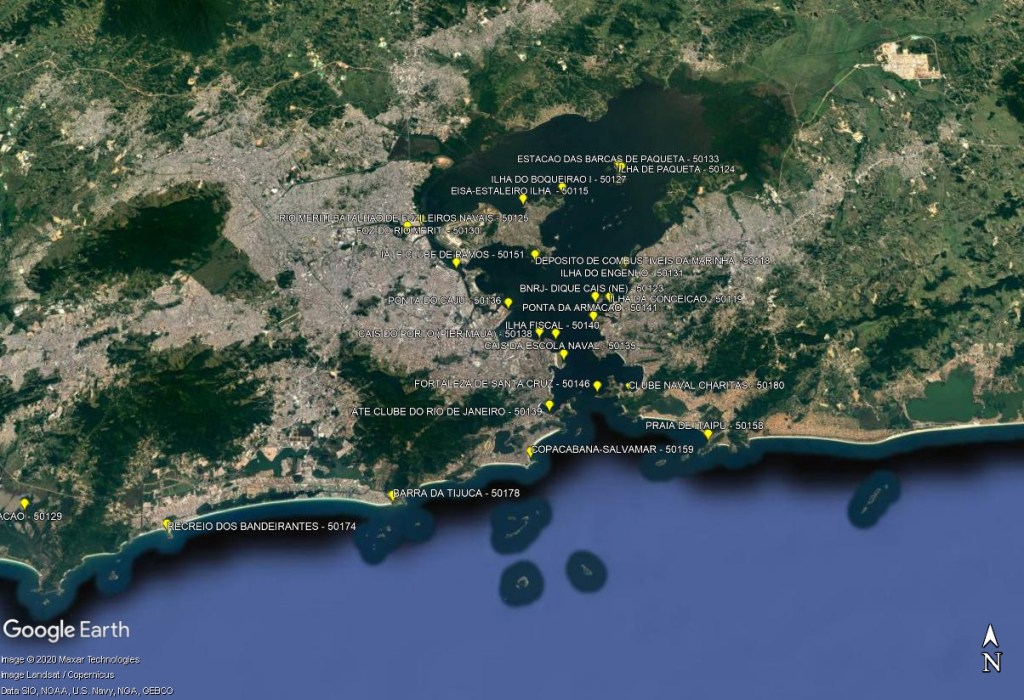 A Marinha do Brasil disponibiliza para download o kmz das estações marégráficas.