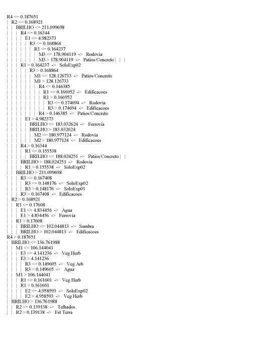 Através do Weka, os resultados gerados por exemplo, em processos de segmentação e extração de atributos no Interimage (ver: https://sosgisbr.com/2017/06/01/) poderão ser validados de acordo com os coeficientes e poderão ser levantadas as possibilidades de árvores de decisão para implementação do mapeamento de classes. (http://www.cs.waikato.ac.nz/ml/weka/)