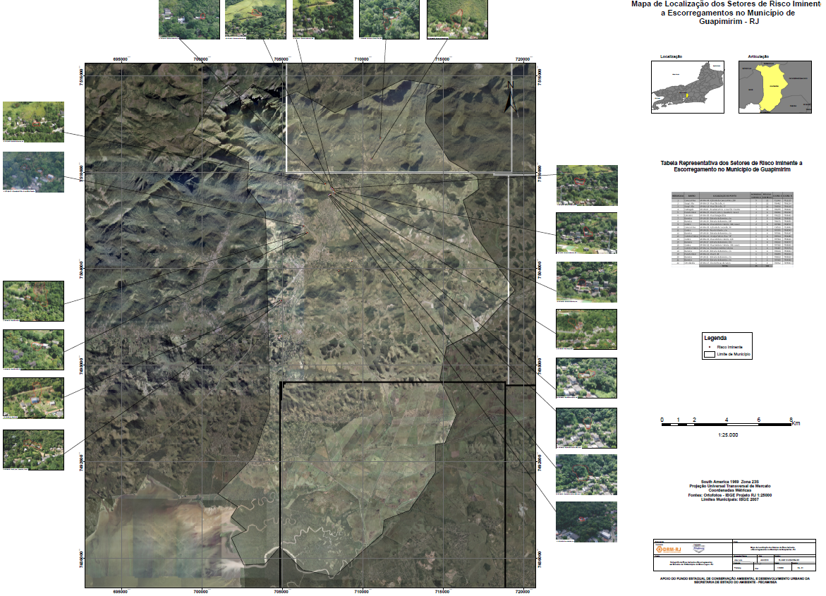 Download direto do Mapa de localização dos setores de risco iminente a escorregamentos (*formato PDF): Carta de Risco de Escorregamento de Encostas de Guapimirim.