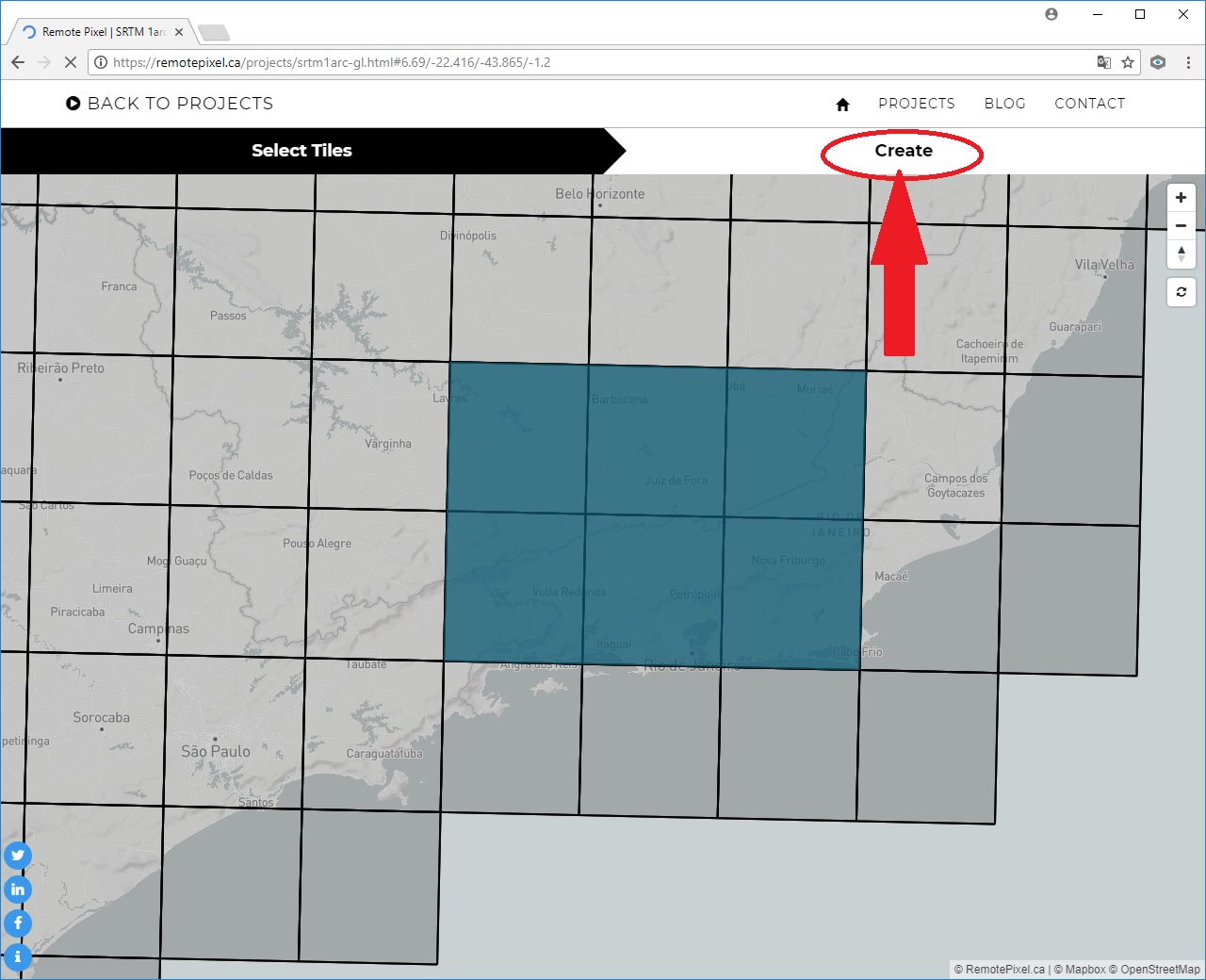 Mosaico na ferramenta SRTM 1ARC / Download do SRTM 1 Arc Second